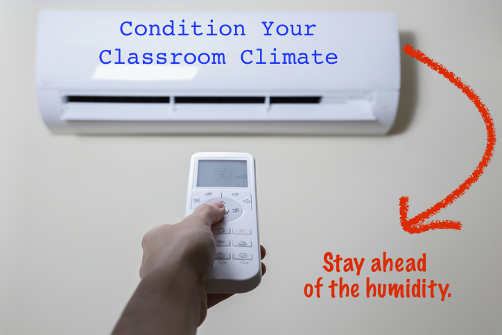 Close up shot of hand holding the remote control of newly installed white air conditioner. Working AC hanging on the pastel color wall with a lot of copy space for text. Background. (Close up shot of hand holding the remote control of newly installed
